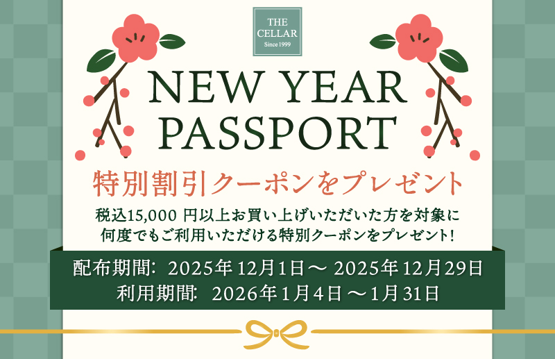 期間中に税込15,000円以上お買い上げのお客様を対象に、対象期間内なら何度でもご利用いただける特別クーポン「NEW YEAR PASSPORT」をプレゼントいたします。この機会にぜひご利用ください。