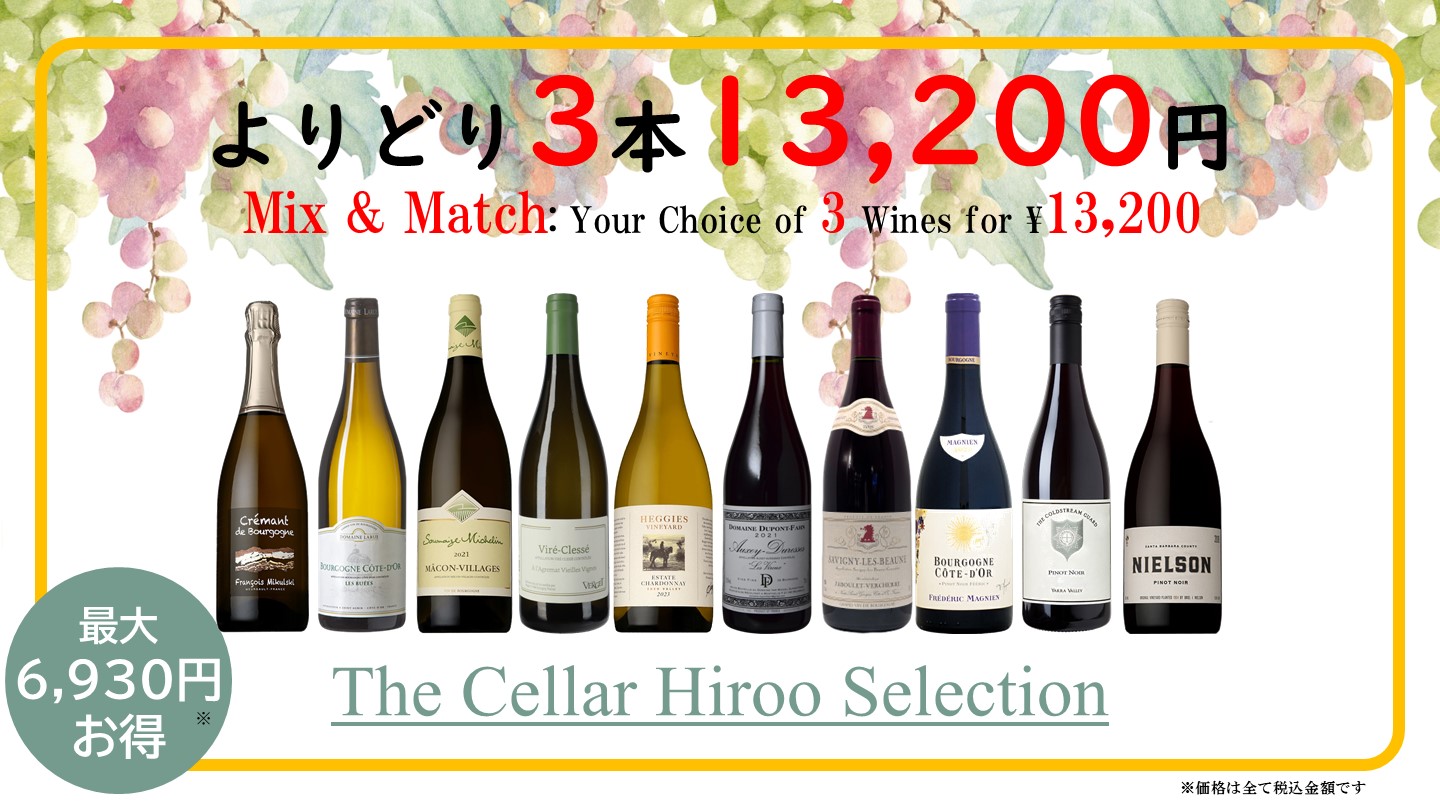 10月9日(木)スタート! THE CELLAR Hirooでは、「よりどり3本 13,200円(税抜12,000円)のセールを開催いたします。